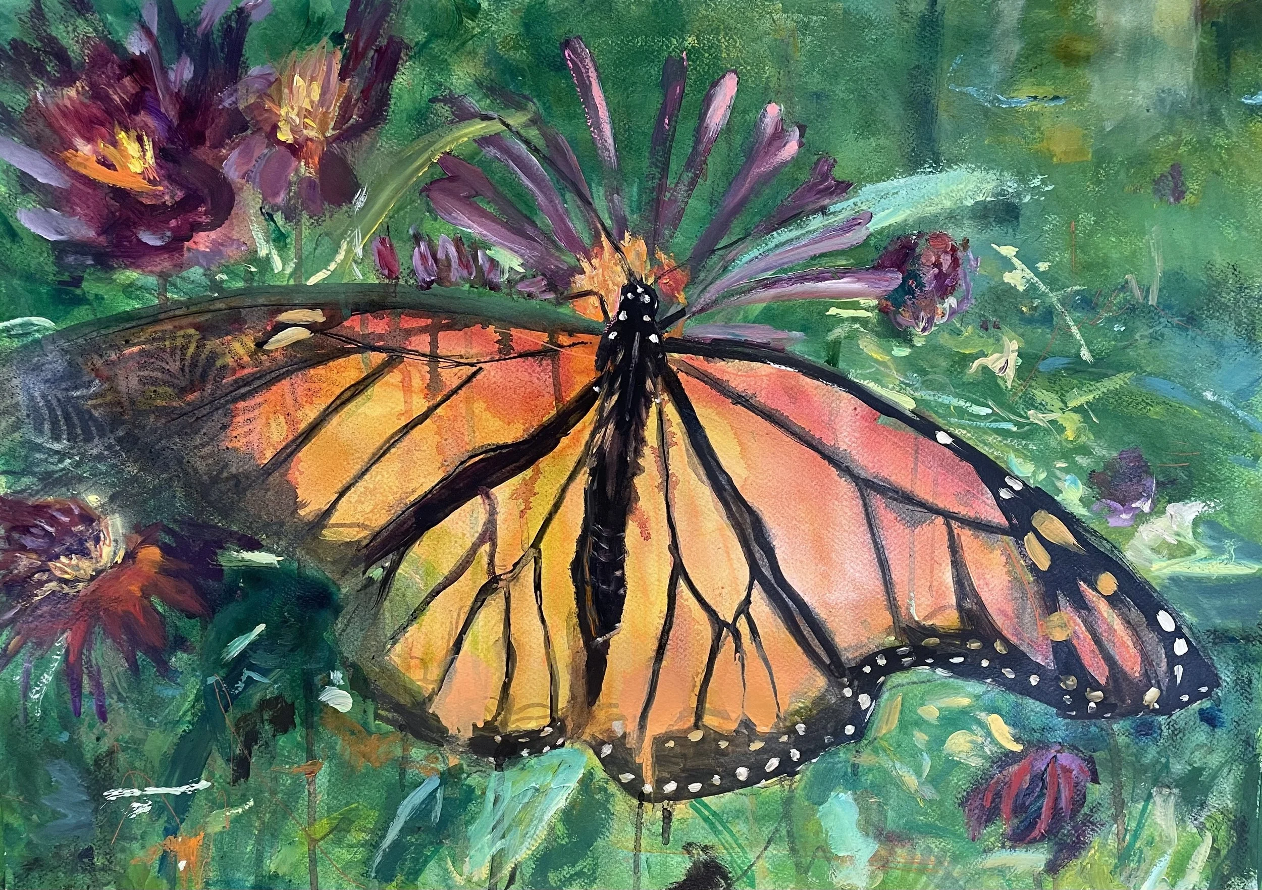 These paintings were inspired by those tender encounters: the stillness of a butterfly pausing on a flower, the way their wings seem to hold light itself, the sudden joy of seeing one appear just when you needed it most. Each painting is both a celebration of nature’s artistry and an invitation to feel connected—to beauty, to memory, and to the comforting thought that we are never entirely alone.