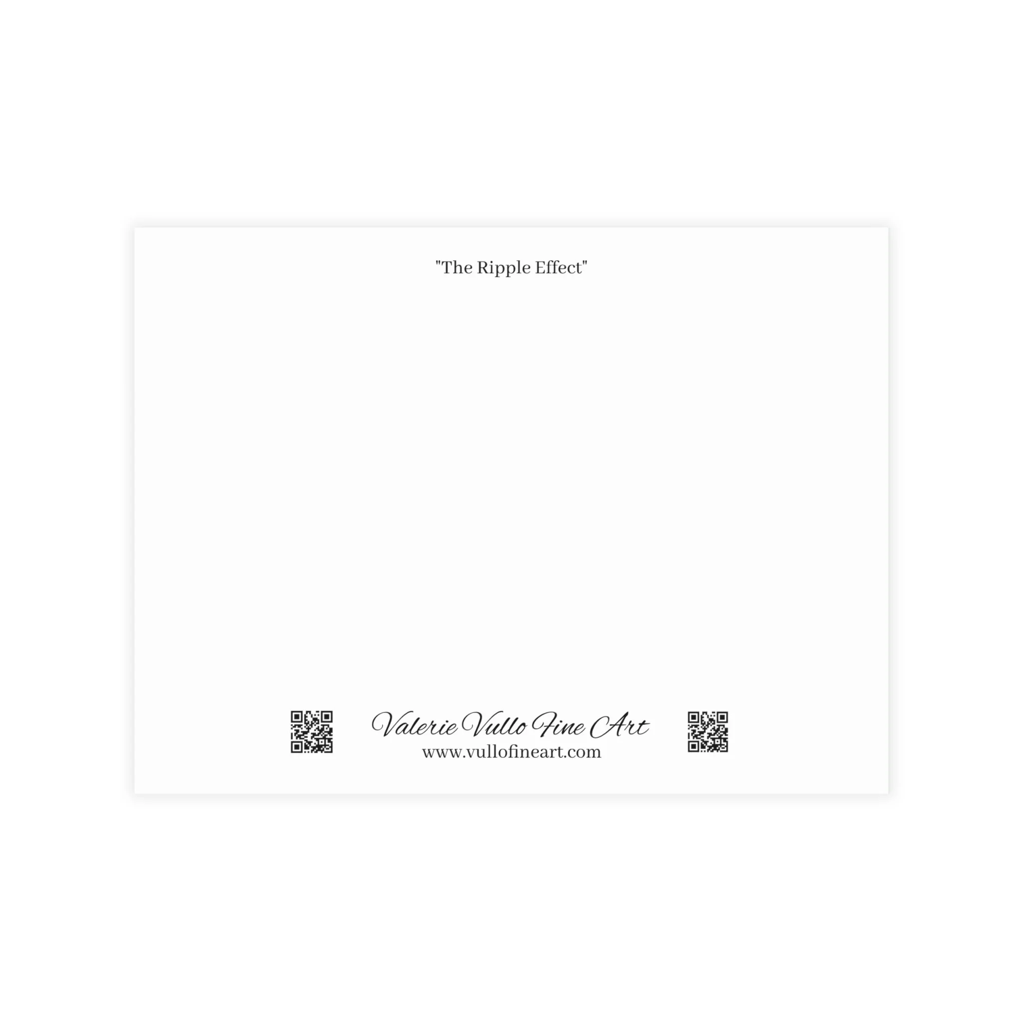 Your kindness will ripple throughout the world when you send "The Ripple Effect" post card, near or far. It's amazing how a small gesture, like a hand written note, can brighten someone's day. Spread love, joy, peace, and beauty with a greeting on these fine art post cards